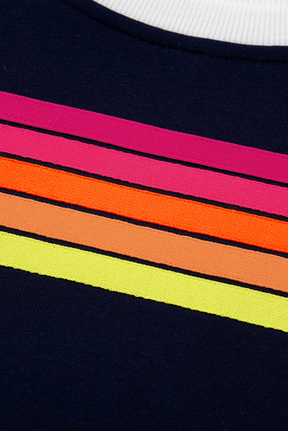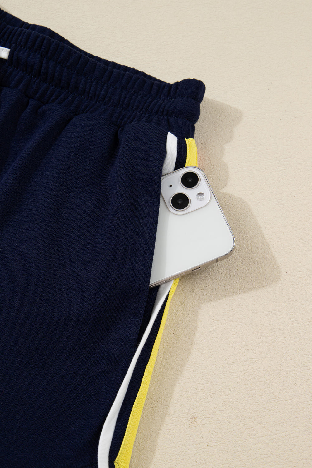 Bluing Colorful Striped Accent Varsity Long Sleeve Pullover and Shorts Matching Set